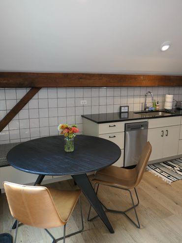 There are laundry facilities and a second full bathroom in the canning kitchen below the apartment.